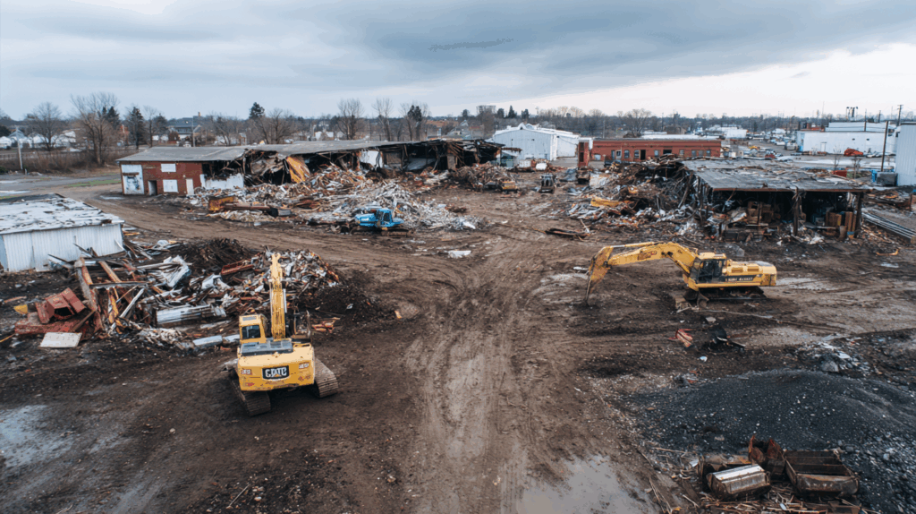 Clearing outdated or unsafe structures such as warehouses, retail spaces, and office buildings to make way for future growth. - Industrial Facilities